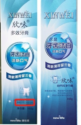 据了解,新生活集团旗下有“欣味”口腔护理品牌,信号新闻(0532-80889431)在电商平台检索发现,该产品旧版外包装明确标注 “洁白牙齿、清新口气、保护牙龈” 三项功效;目前在售新版包装已调整表述,改为 “帮助维护口腔健康,给牙齿细心呵护”,未再出现 “保护牙龈” 等具体功效宣称。